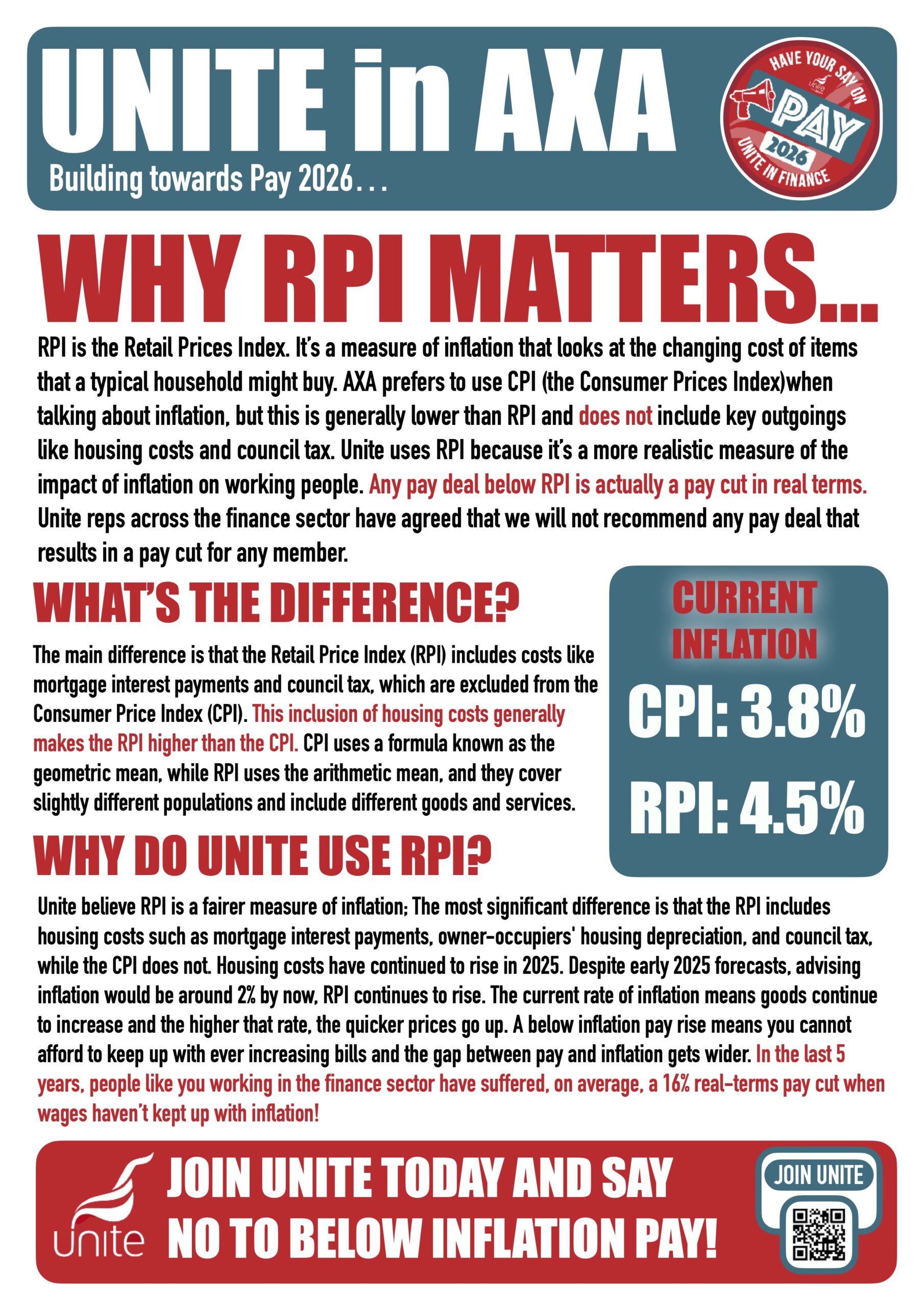 - The 2023 pay budget has been negotiated by AXA and Unite